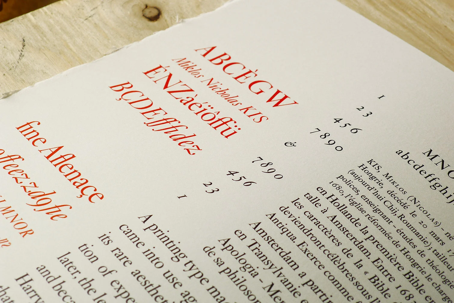 Répertoire is a collection of the more handsome, larger reworkings of the compositions made for my Concaténation de caractères typographiques from 2003 (sold out), my type catalogue that was meant to include every last fount held in my Atelier de la Cerisaie in Paris. The aim of Répertoire was to showcase the atelier’s most beautiful metal typefaces, especially the ones I have in sufficient quantities to be able to use for text-heavy bookwork.